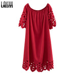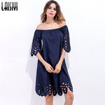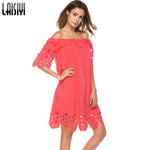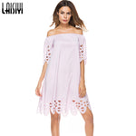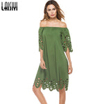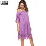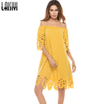 Brand Name: LAISIYIMaterial: PolyesterStyle: BohemianSilhouette: A-LinePattern Type: SolidSleeve Length(cm): ShortDecoration: Hollow OutDresses Length: Knee-LengthSleeve Style: RegularWaistline: NaturalNeckline: Slash neckSeason: SummerModel Number: summer dressGender: Women