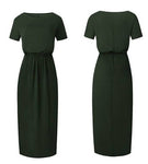 Brand Name: hengsongMaterial: PolyesterStyle: CasualSilhouette: LoosePattern Type: SolidSleeve Length(cm): ShortDecoration: PocketsDresses Length: Ankle-LengthSleeve Style: RegularWaistline: NaturalNeckline: O-NeckSeason: SummerModel Number: Women dressGender: WomenColor: Black , Navy BlueSplit dress: S M L...