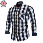 Gender: MenItem Type: ShirtsShirts Type: Dress ShirtsCollar: Turn-down CollarClosure Type: Single BreastedSleeve Style: RegularModel Number: FM099Brand Name: Fredd MarshallSleeve Length(cm): FullPattern Type: PlaidMaterial: CottonFabric Type: BroadclothStyle: CasualColor: Blue, Black, Dark...