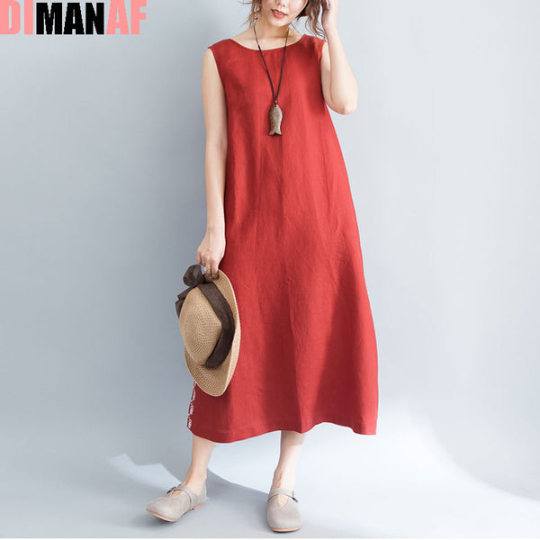 Gender: WomenDresses Length: Knee-LengthMaterial: Linen,CottonSeason: SummerStyle: CasualSilhouette: LooseSleeve Style: RegularPattern Type: SolidBrand Name: DIMANAFSleeve Length(cm): SleevelessDecoration: NoneNeckline: O-NeckModel Number: 6-17-Dress-11Waistline: NaturalSeason: 2017 New SummerColor style: RegularMaterial: Cotton LinenPattern type: Solid...