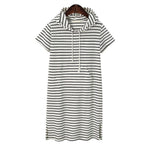 Gender: WomenBrand Name: Kate KasinModel Number: Dress LH0134Sleeve Length(cm): ShortMaterial: Rayon,PolyesterSleeve Style: RegularDecoration: NonePattern Type: StripedWaistline: NaturalSilhouette: StraightDresses Length: Knee-LengthSeason: SummerNeckline: HoodedStyle: CasualColor: White base/Navy blue base(As pictures show)Womens Clothing...