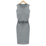 Gender: WomenPattern Type: SolidNeckline: O-NeckDresses Length: Mid-CalfSleeve Style: RegularDecoration: PocketsMaterial: Polyester,CottonWaistline: NaturalSilhouette: StraightSleeve Length(cm): SleevelessSeason: SummerBrand Name: SMILE FISHModel Number: J2218Style: CasualGender: WomenColor: Rose red,Dark Blue,GreySize: s m l xlColor...