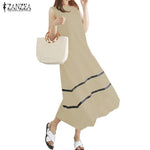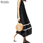 Brand Name: ZANZEAMaterial: CottonStyle: CasualSilhouette: Fit and FlarePattern Type: PatchworkSleeve Length(cm): SleevelessDecoration: NoneDresses Length: Ankle-LengthSleeve Style: TankWaistline: NaturalNeckline: O-NeckSeason: SummerGender: Women